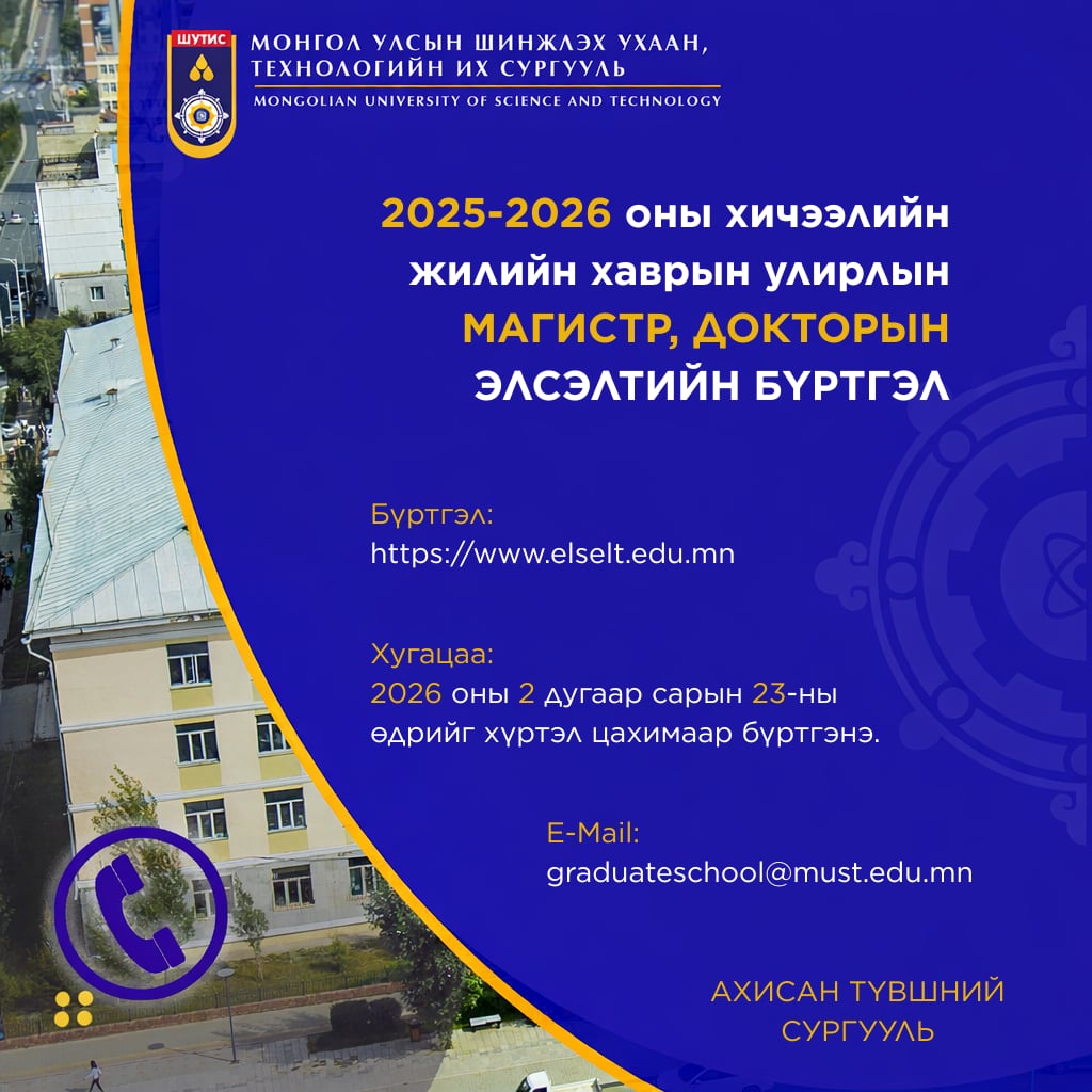 2025-2026 оны хичээлийн жилийн хаврын улирлын магистр, докторын элсэлтийн бүртгэл явагдаж байна